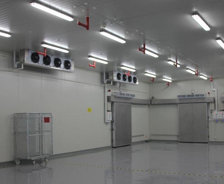 1、庫房部分:該食品冷庫安裝聚氨酯雙面彩鋼板,選用的是100mm厚聚氨酯保溫,雙面彩鋼0.426mm厚,并有B2級阻燃的特點。庫內安裝的手動平移門為雙面彩鋼板,雙面彩鋼0.426mm厚,門洞尺寸: 1500mm*2000mm*100mm厚。庫內的地面還鋪有XPS擠塑板保溫層;還鋪有地面PE防水防潮膜(厚度不小于0.2mm,上下兩層)。庫內安裝定制的風幕機。